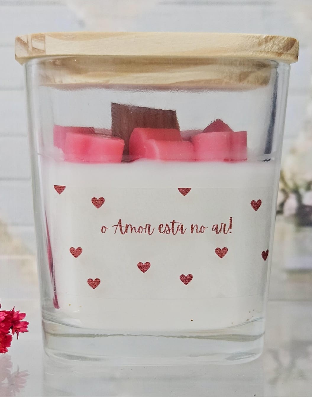 Composição: Ceras naturais (coco, palmiste e palma, pavio de algodão) e essência premium lipossolúvel.