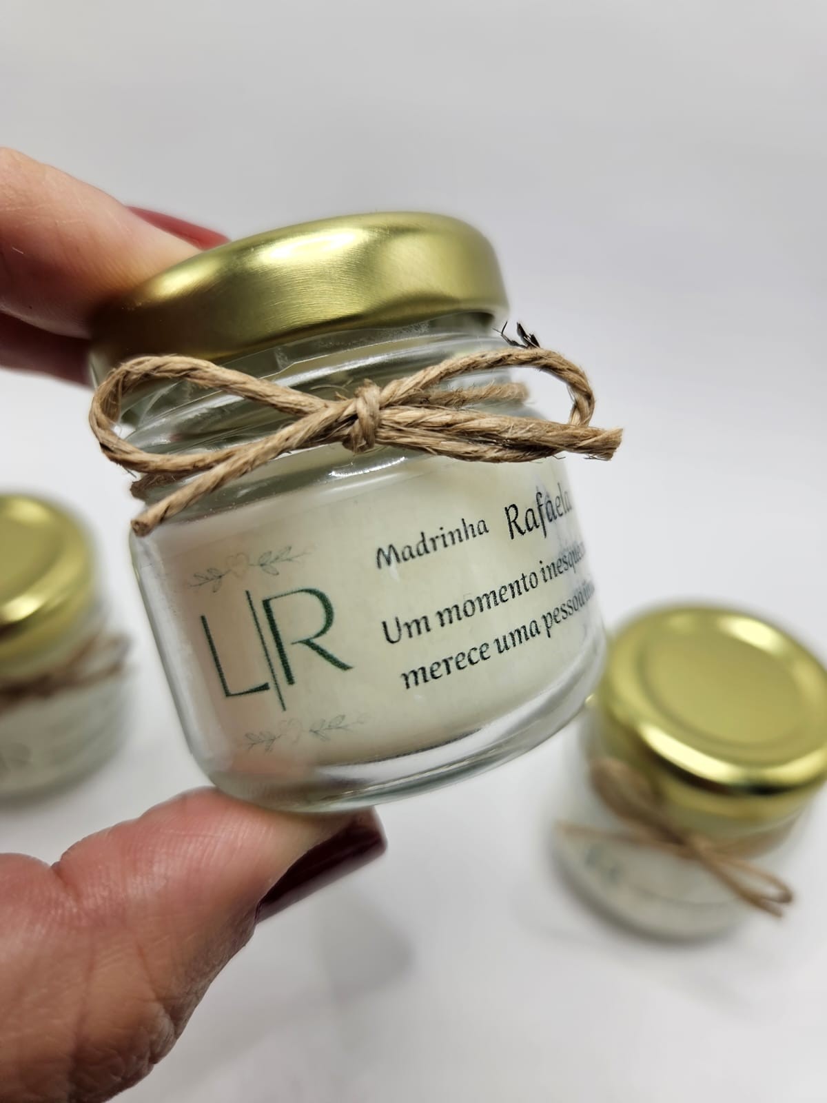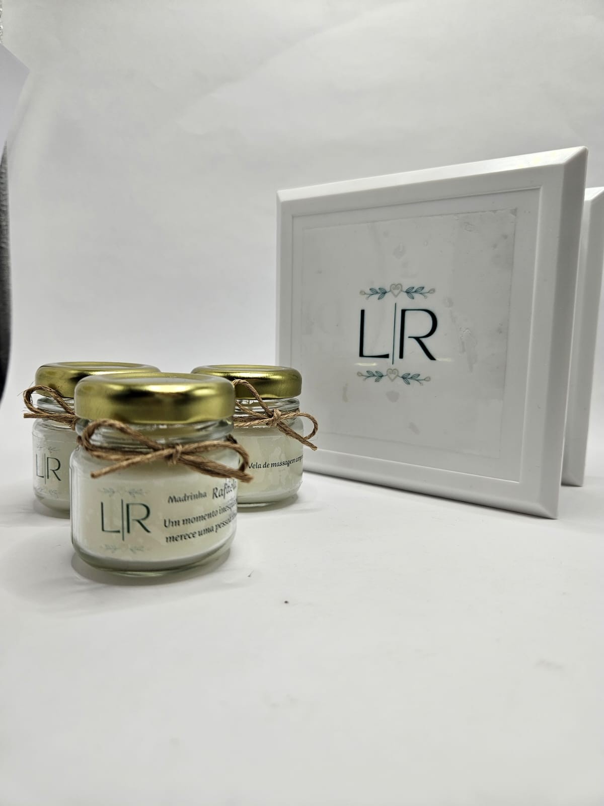 Incluso no valor: 1 caixa - 3 mini vela aromatica - 1 adesivo frente - Laço rami